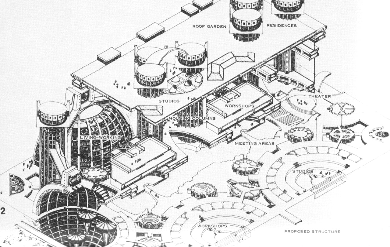 Pour lui, l'arcologie devait incarner une alternative radicale : un écosystème urbain autonome, inspiré du modèle du paquebot, où toutes les fonctions (logement, travail, agriculture, loisirs, gestion des ressources) seraient regroupées dans un même volume architectural. Cette approche éliminerait les déplacements superflus et minimiserait l'empreinte écologique.