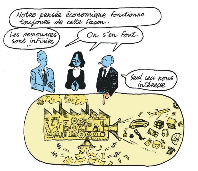 Lorsque l’économie a établi sa domination, la confrontation est sans issue : la conservation de la nature cause la destruction de l’économie et la conservation de l’économie implique inéluctablement la destruction de la nature. La condition du maintien de l’économie capitaliste est « de ne laisser intervenir ni durabilité, ni stabilité », ce maintien « n’est possible que si l’homme sacrifie son monde et son appartenance au monde. » Floran Augagneur