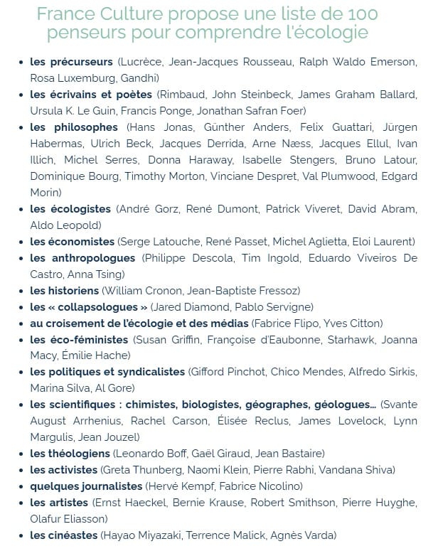 Quels sont les intellectuels qui comptent dans les différentes sphères de réflexion de l’environnement, du climat et de la biodiversité ? Quelles nouvelles idées émergent, au-delà des chapelles, depuis l’ultra-gauche écolo jusqu’à la droite environnementaliste, en passant par les artistes et les théologiens ? Quels livres faudrait-il lire ?